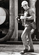 DIPLOMINGENIEUR LUTZ OERTEL IM VEB PETROLCHEMISCHES KOMBINAT SCHWEDT/BRANDENBURG. 1981. Vintage, Silbergelatineabzug. 23,0 x 16,2 cm. Photographie mit minimalen Knicken u. winzigen