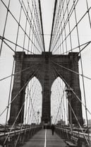 BROCKLYN BRIDGE, NEW YORK. 1970er Jahre. Vintage, Silbergelatineabzug. 39,5 x 25,3 cm. Photographie rückseitig mit Bleistift von fremder Hand bezeichnet u. datiert. Außerdem