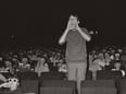 DAVID BOWIE VOR DER BERLINER MAUER. 1987. Fine Art Archive-Abzug. 36,0 x 55,0 cm (50,7 x 61,0 cm). Photographie rückseitig mit schwarzem Stift signiert.