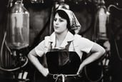 MELKERIN, BERLSTEDT/THÜRINGEN. 1987. Vintage, Silbergelatineabzug. 14,3 x 20,6 cm. Photographie mit minimalen Knicken u. Retuschespuren im Bild. Rückseitig mit blauem Stift bezeichnet u. datiert.