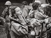 STUDENTINNEN IM ZIVILVERTEIDIGUNGSLAGER, THÜRINGEN. 1983. Vintage, Silbergelatineabzug, matt. 20,5 x 27,0 cm. Photographie rückseitig mit Bleistift signiert, bezeichnet u. datiert.